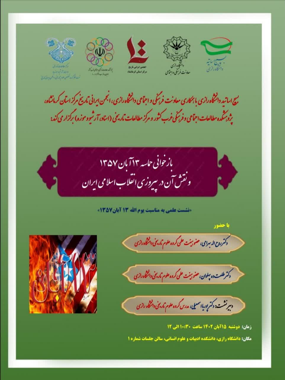 نشست علمی «بازخوانی حماسه 13 آبان 1357 و نقش آن در پیروزی انقلاب اسلامی ایران »به مناسبت یوم الله 13 آبان1357